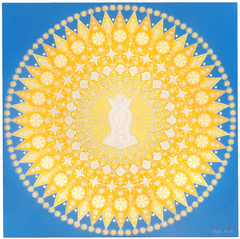 Sa peinture, faite de lumière, de symboles et de contemplation, trouve naturellement sa place dans cette biennale consacrée au monde invisible.